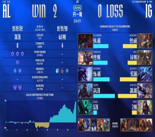 后期AL持续运营拿到二代大龙,终极团战AL团灭iG,Flandre赛恩开车撞飞iG,Soboro研发i6,AL一波推平iG基地拿到比赛胜利。